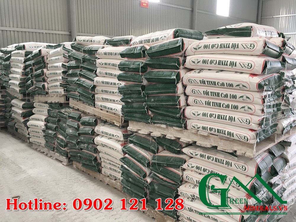 Vôi tinh ( Vôi bột nguyên chất) thương hiệu Vôi tinh CaO 100 của công ty TNHH Khoáng Sản Xanh là nhãn hiệu cao cấp dùng cho ngành thủy sản, xử lý ao hồ, chuồng trại.