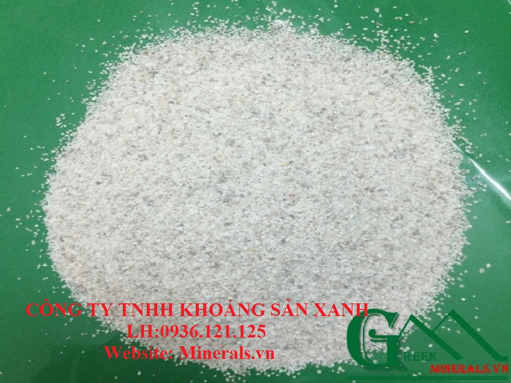 Cát nhân tạo được sản xuất và cung cấp bởi công ty TNHH Khoáng Sản Xanh - công ty hàng đầu trong lĩnh vực sản xuất cát nhân tạo hiện nay. Sản phẩm cát nhân tao với kích cỡ 0.8mm-1.8mm, màu trắng được sử dụng rộng rãi trong sản xuất keo dán gạch.
